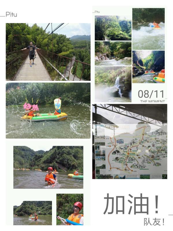 中午品尝完农家绿色柴火饭菜后,就直接前往连云山漂流景区。在漂流过程中“你争我赶,相互协作,互相鼓励”充分发挥出队友间并肩作战、互补互助的精神,并安全的到达终点。对于团队的成员来说,不仅要有个人能力,更需要有在不同的位置上各尽所能、与其他成员协调合作的能力。
